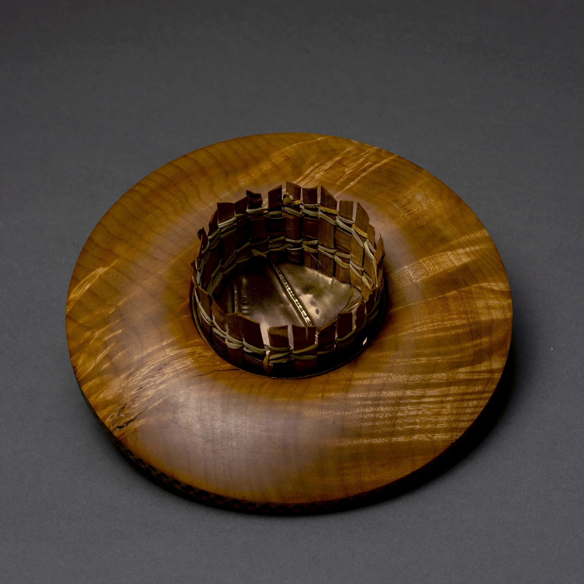 wood, copper, steel, silver, faux gold leaf, leather